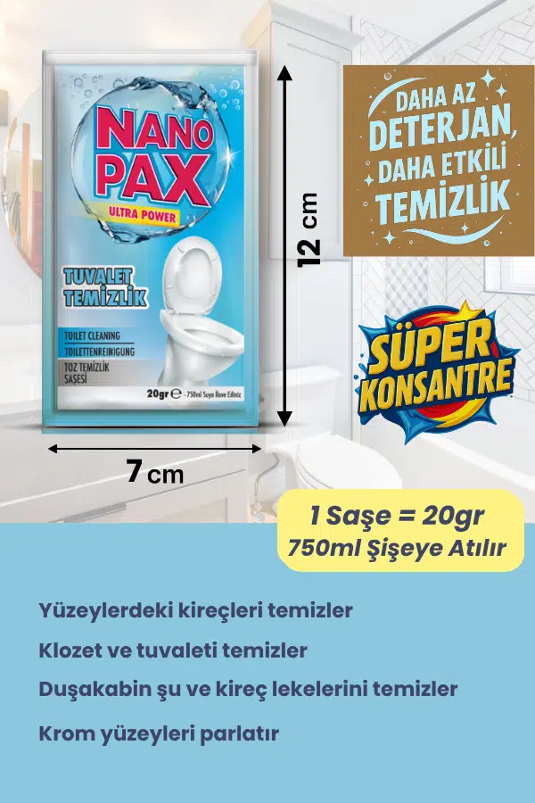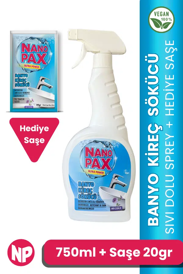 NANOPAX 750ML BANYO KİREÇ SÖKÜCÜ DOLU SIVI SPREY + 20 GR TOZ SAŞE HEDİYE (ULTRA KONSANTRE)