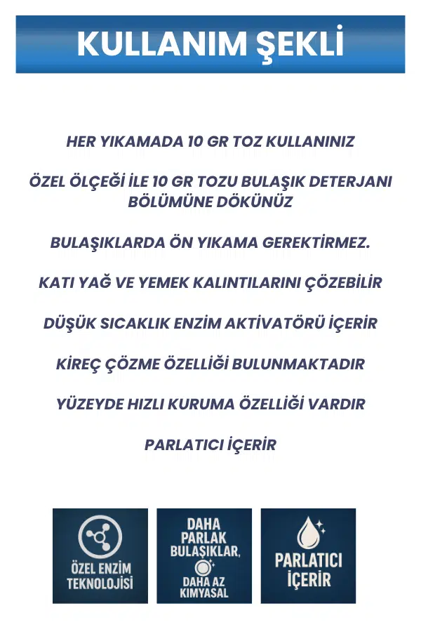 BİR KUTU 1 KG TOZ BULAŞIK DETERJANI DETERJANI VE 10 GR ÖLÇEK İÇERİR.