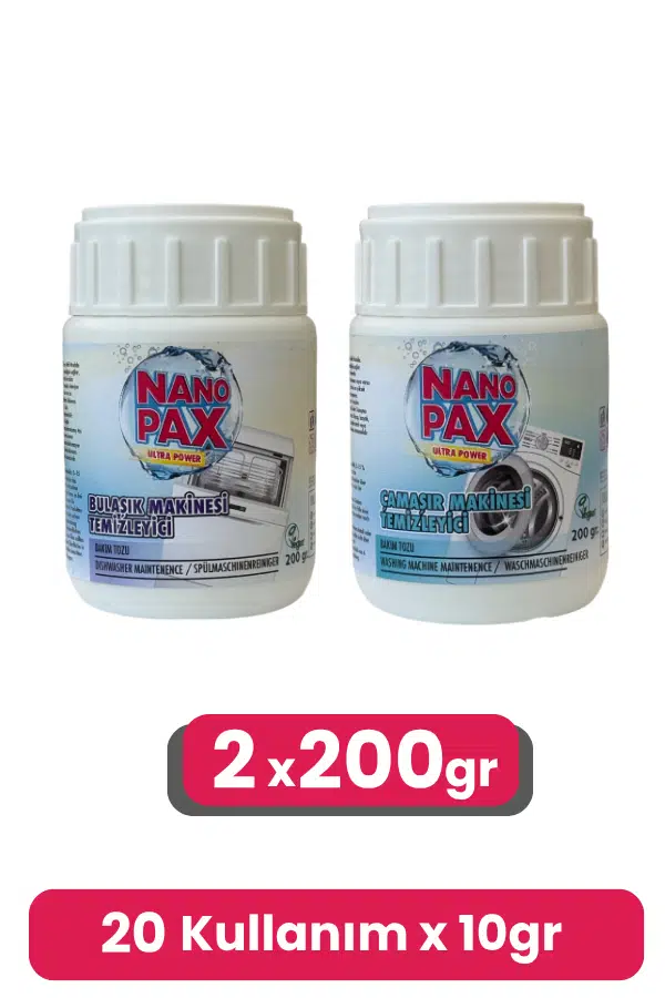 NANOPAX 2x200gr Adet Bulaşık&Çamaşır Makinesi Kazan Temizleme ve Bakım Tozu
