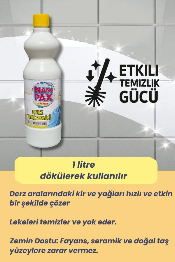 Derz aralarındaki inatçı kirlerden bıktınız mı? Zamanla kararan, lekelenen ve hijyenik görünümünü kaybeden derzler artık sorun olmaktan çıkıyor! Yeni nesil 1 Litre Sıvı Derz Temizleyici ile zeminleriniz ilk günkü gibi tertemiz!