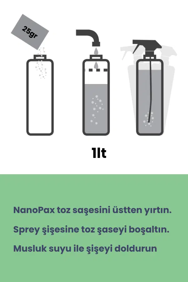 1 SAŞE = 1000ML MİKRO KÖPÜKLÜ SPREYE ATILIR.