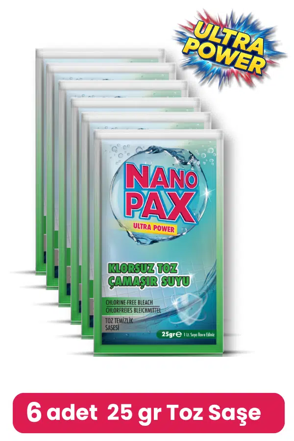 NANOPAX 6 ADET KLORSUZ ÇAMAŞIR SUYU TOZ DETERJAN SAŞELERİ (ULTRA KONSANTRE) 6 ADET X 25 GR