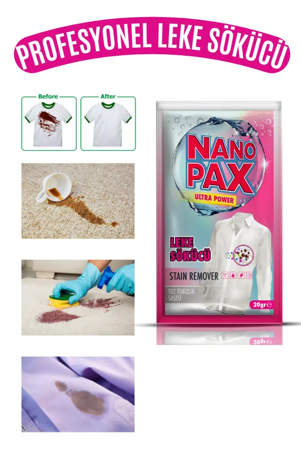 NANOPAX Ultra Konsantre Leke Sökücü Toz, piyasadaki diğer leke çıkarıcılara göre daha güçlü, daha hızlı ve daha çok yönlü bir çözüm sunar. Doğru kullanıldığında kumaşlarınıza zarar vermeden inatçı lekelerden kurtulmanıza yardımcı olur.