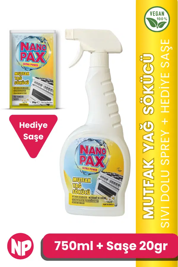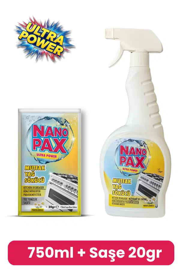 NANOPAX 750ML MUTFAK YAĞ SÖKÜCÜ DOLU SIVI SPREY + 20 GR TOZ SAŞE HEDİYE (ULTRA KONSANTRE)