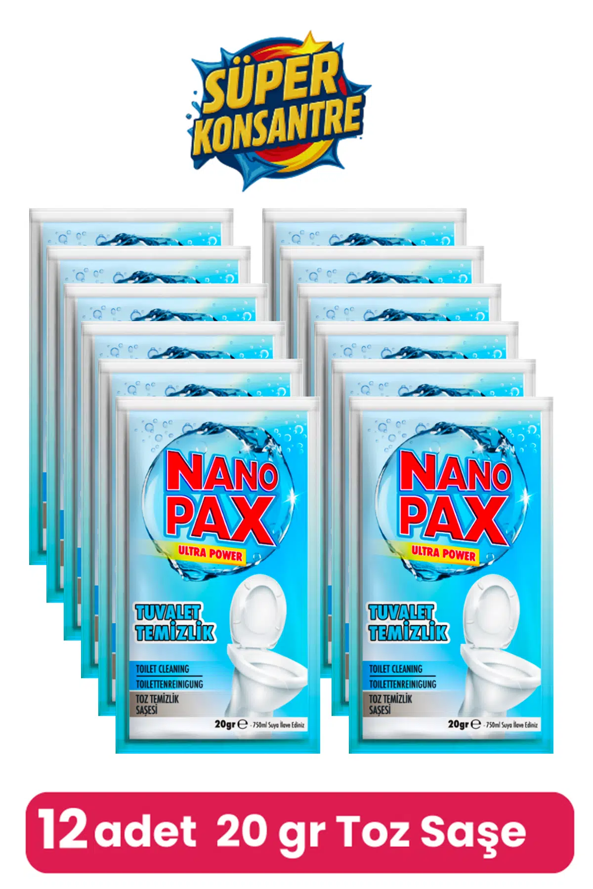 Paket İçeriği: 12 Adet x 20 Gr Nanopax Tuvalet & Klozet Temizleyici Saşe (Toplam 240 Gr)