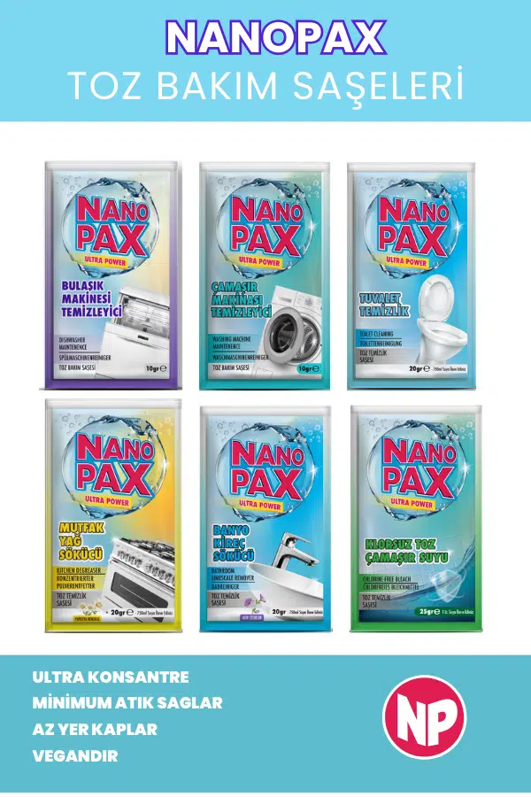 Nanopax ile temizlik alışkanlıklarınızı kökten değiştirin! %100 Türk Ar-Ge laboratuvarlarında geliştirilen bu özel formül, minimum atık ve maksimum verimlilik felsefesiyle tasarlanmıştır.