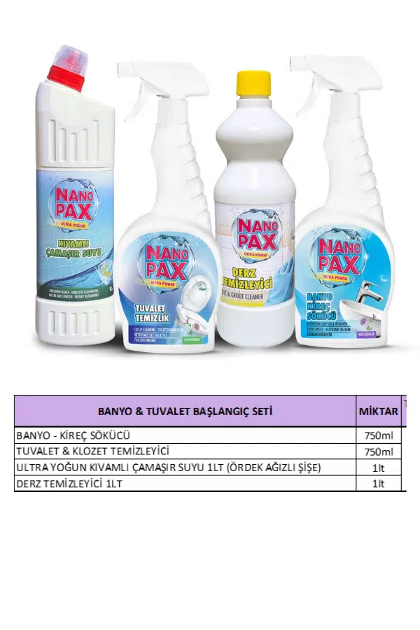 Nanopax 4’lü Premium Banyo Temizlik Seti | Ultra Yoğun Çamaşır Suyu, Derz Temizliği, Klozet Bakımı