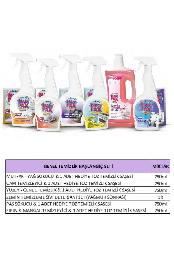 Nanopax 6’lı Hijyen Paketi | Genel Temizlik Seti Mutfak, Cam, Zemin, Fırın, Pas