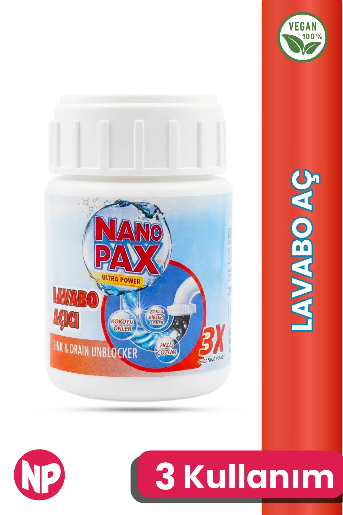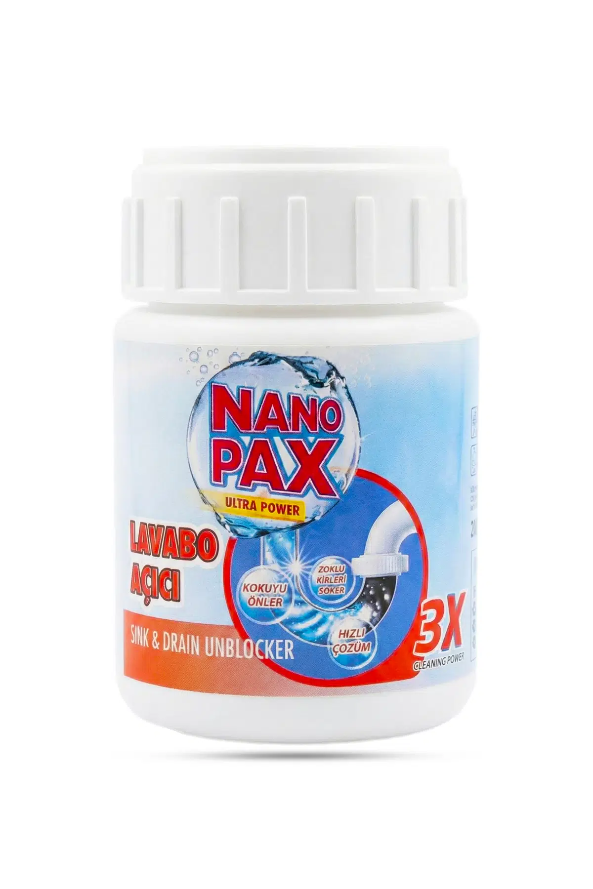 Ürün Açıklaması: NanoPax Lavabo Aç (200 Gr) – Tıkanıklıklara Karşı Hızlı ve Kesin Çözüm Evdeki en can sıkıcı sorunlardan biri olan tıkanmış lavabolar artık tarih oluyor! NanoPax Lavabo Aç, 200 gramlık pratik ambalajı ve geliştirilmiş güçlü formülüyle mutfak, banyo, duş ve tuvalet giderlerindeki inatçı tıkanıklıkları hızla açar. Sadece tıkanıklığı gidermekle kalmaz, kötü kokuları kaynağında yok ederek derinlemesine temizlik sağlar.