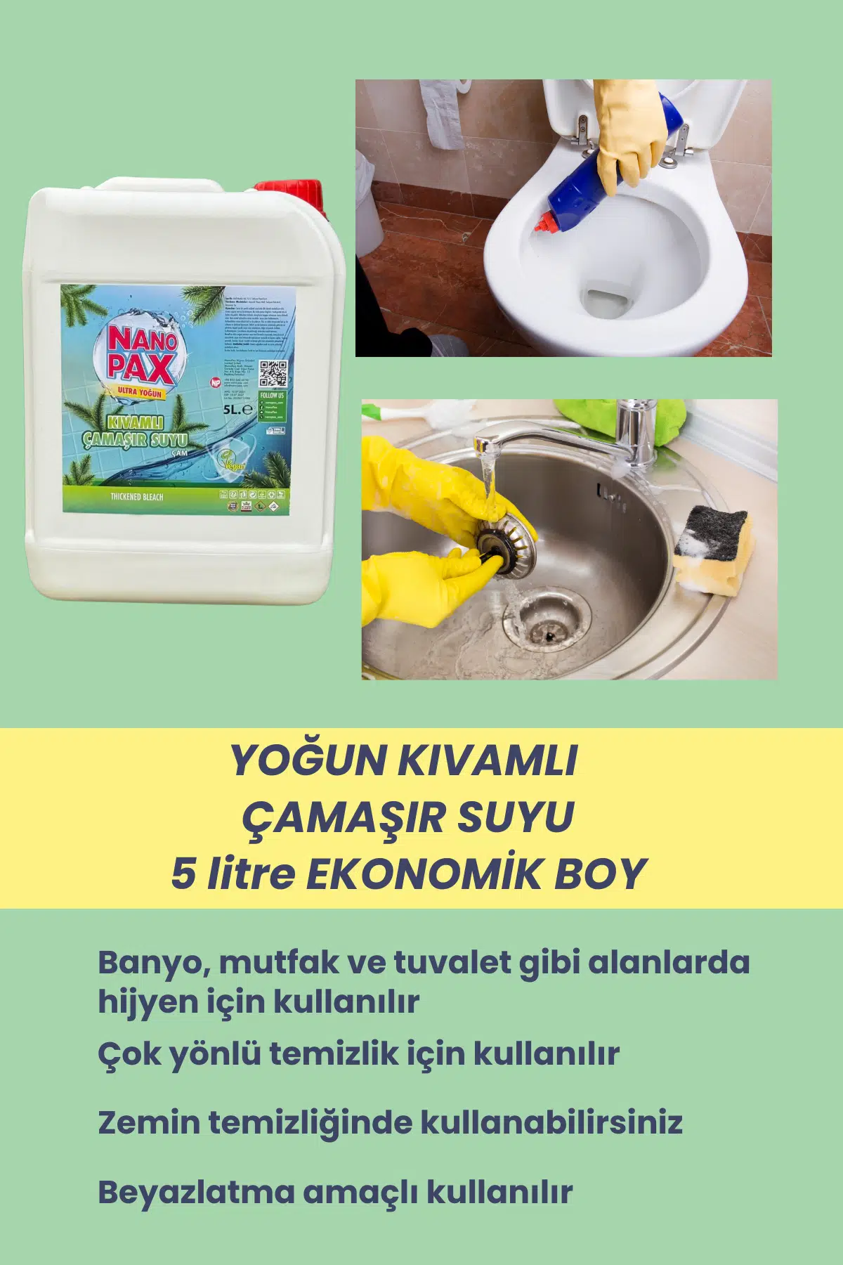 ·2 Adet x 5 Litre NANOPAX Ultra Yoğun Kıvamlı Çamaşır Suyu (Toplam 10 Litre)