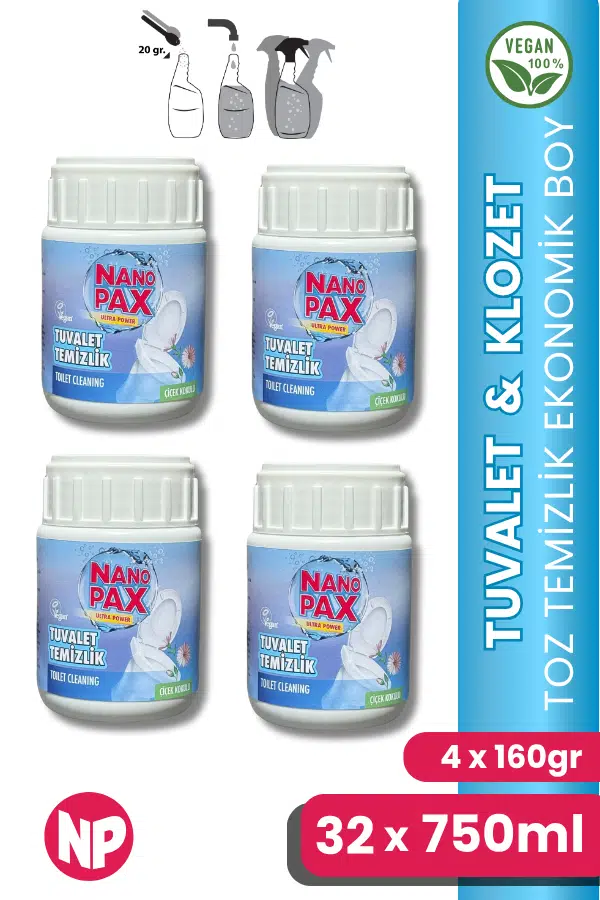 NANOPAX 4 x 160gr TUVALET & KLOZET AKTİF KÖPÜKLÜ TOZ DETERJAN BEBEK BOY (ULTRA KONSANTRE)